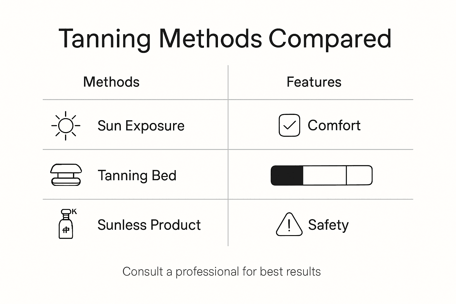 Here's a comparison of popular tanning methods and what sets them apart: